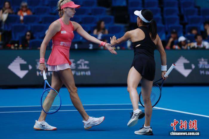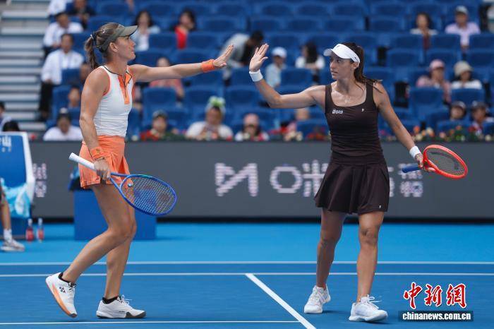 10月2日,在北京进行的2025中国网球公开赛女双1/4决赛中,巴博斯/史蒂芬妮组合负于加藤未唯/斯朵拉组合。图为巴博斯/史蒂芬妮(右)组合在比赛中。中新社记者 韩海丹 摄