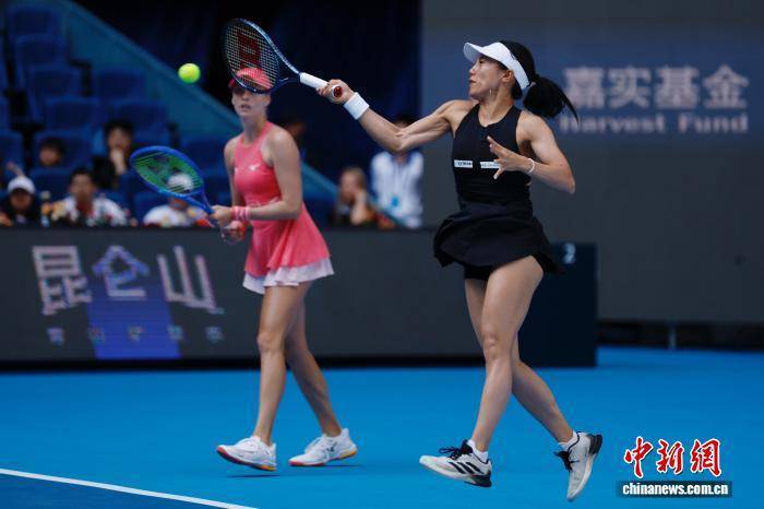 10月2日,在北京进行的2025中国网球公开赛女双1/4决赛中,加藤未唯/斯朵拉组合战胜巴博斯/史蒂芬妮组合,晋级下一轮。图为加藤未唯/斯朵拉(右)组合在比赛中。中新社记者 韩海丹 摄