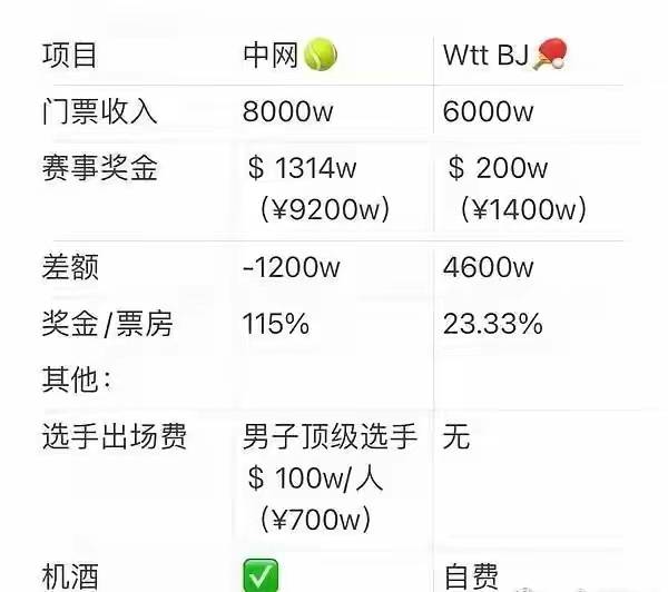 名记贺晓龙晒出了去年中网和WTT中国大满贯两场赛事的营收数据奖金相差太大2025中国网球公开赛_中网赛程签表+直播比分一网打尽
