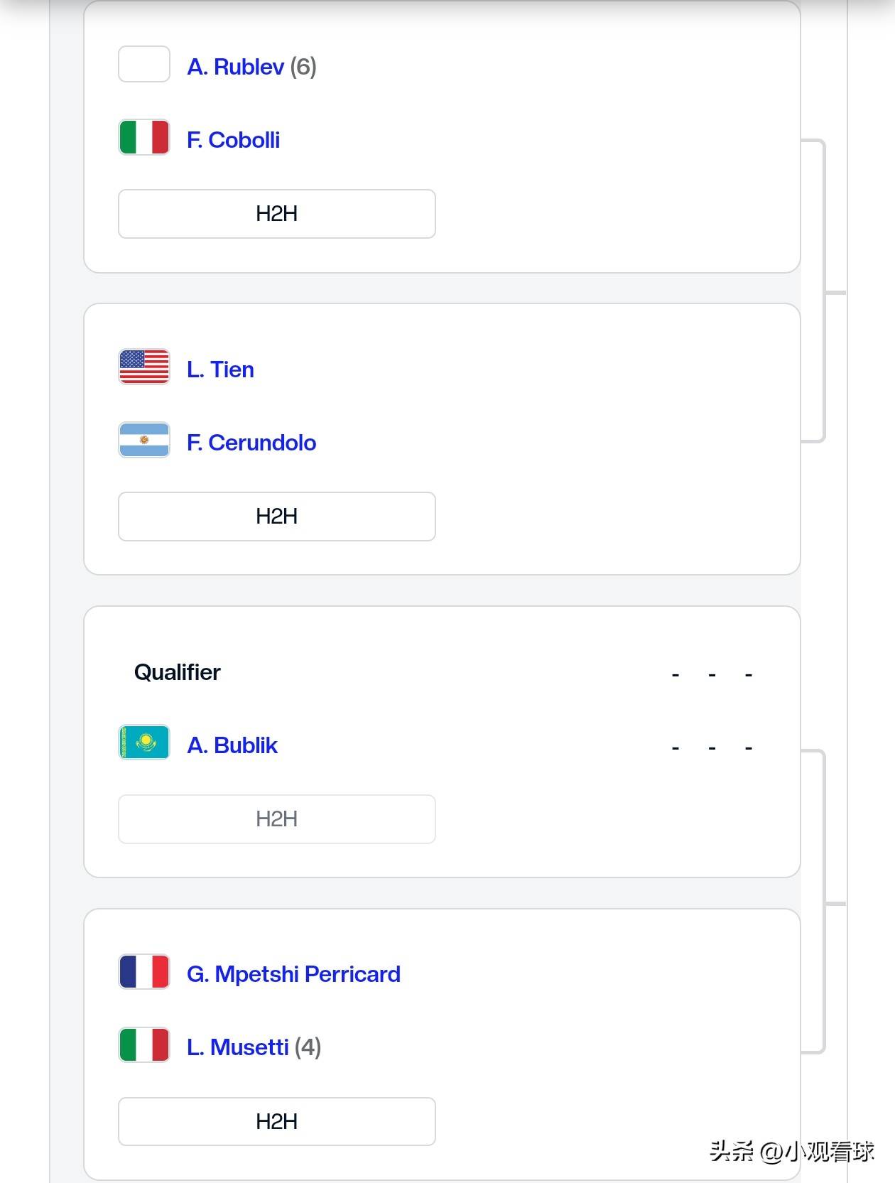 4号种子穆塞蒂首轮对阵佩尔卡里。交手记录3:0。应对这位发球大炮,穆塞蒂有底气了。