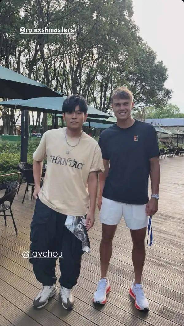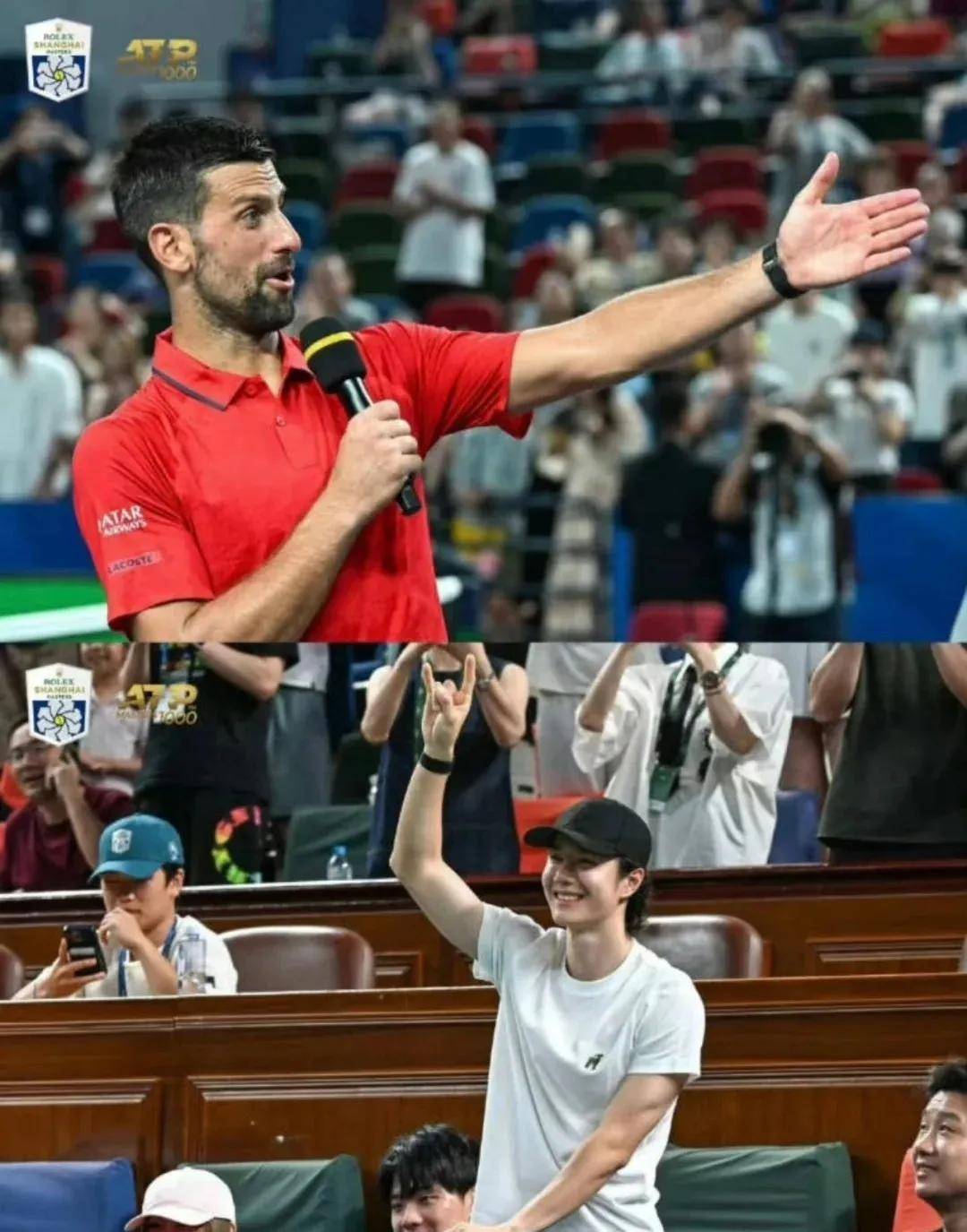 同样在上海劳力士大师赛上出现的还有王一博,他是德约科维奇的粉丝,德约在赛后采访特地感谢一博了来看比赛,还给王一博签了To签球衣。去年在北京长城举行的赞助商活动中两人就曾见过面,还在长城上搭建的迷你球场上一起打了网球。