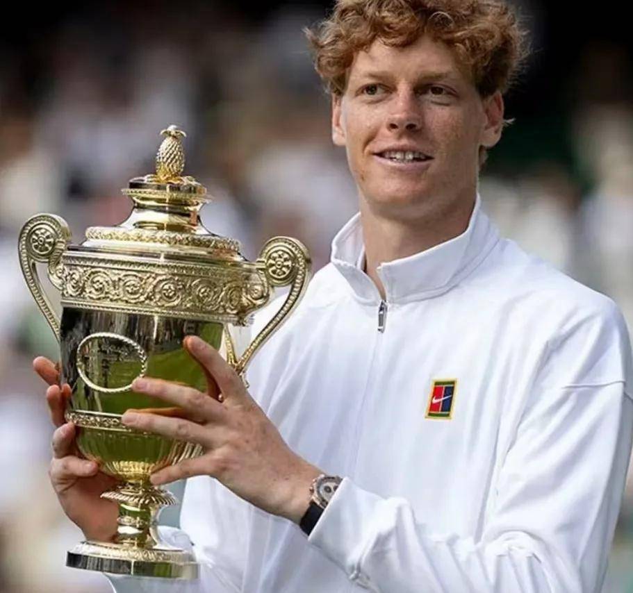 而在捧杯照片上,我们也可以看到辛纳佩戴了一枚18K金的劳力士迪通拿腕表,这款腕表应该是与他在今年温网夺冠时所佩戴的同一枚。