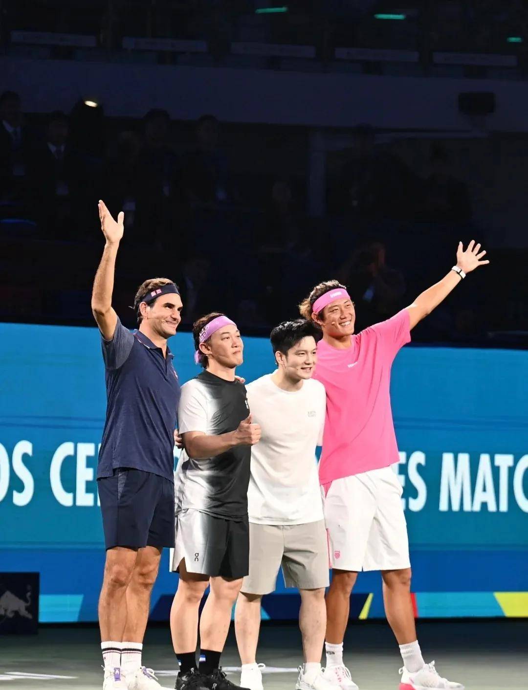 除此之外我们还看到了张新成和吴尊,吴尊也是知名的网球爱好者,他参加了今年的ITF Masters Tour 国际网球大师赛,以业余选手的身份与职业选手搭档出战双打比赛,发球速度已经能达到 180公里/小时。