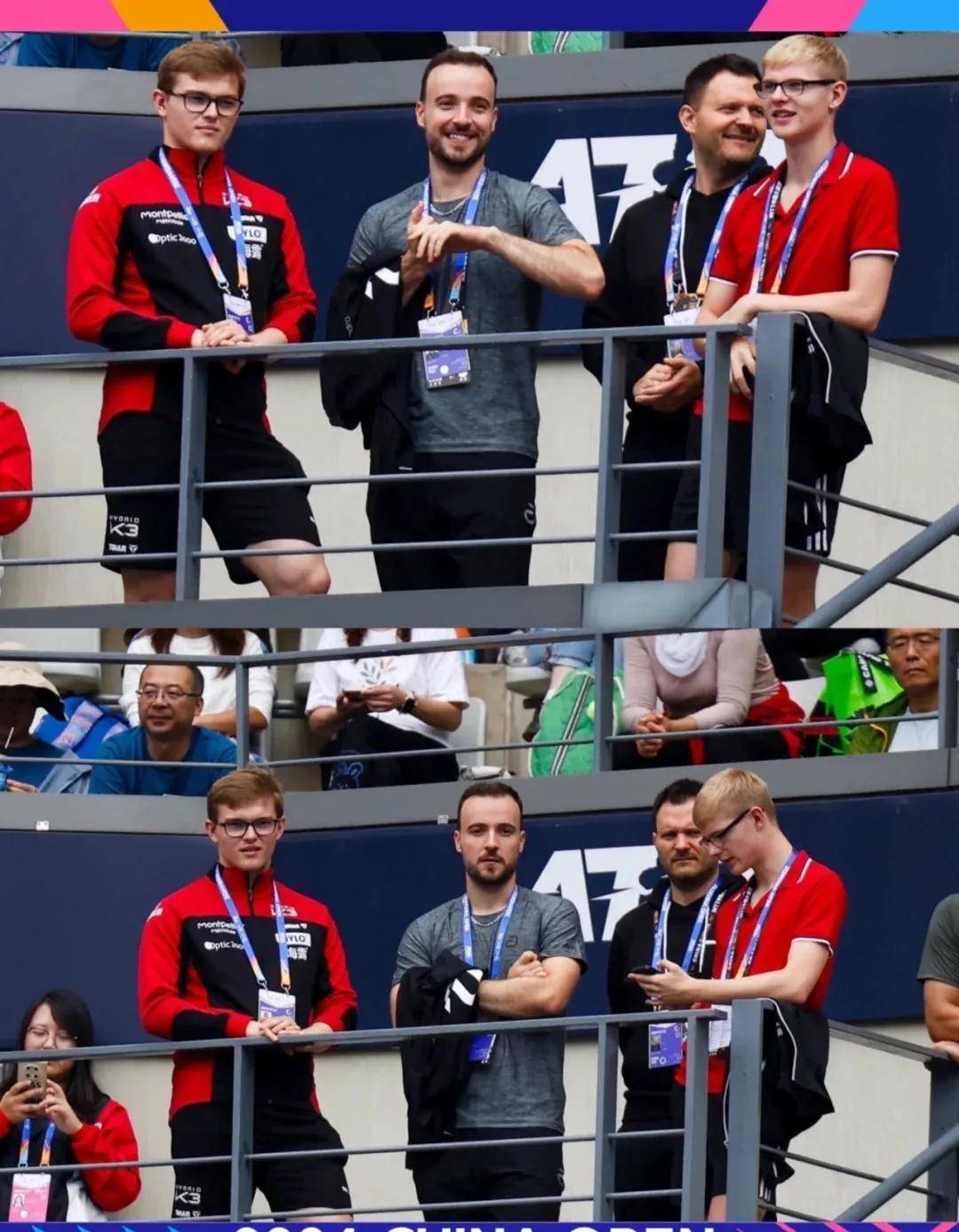 乒乓球运动员勒布伦兄弟也出现在中网观众席上,去年他们就曾来到现场观看中网比赛,不久前菲利克斯被偶遇在萨尔布吕肯打网球,网友还发现后面藏着另一个网球爱好者樊振东,乒乓球与网球再次联动。